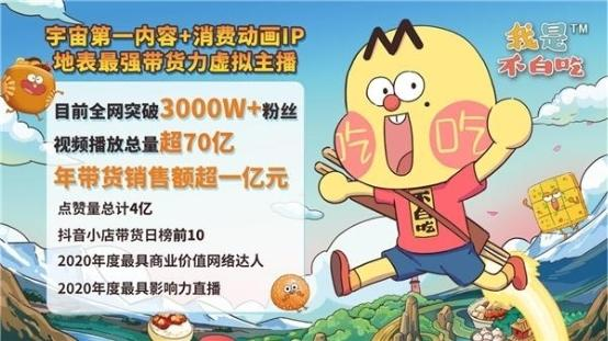 最新数据显示,目前“我是不白吃”全网突破3000万粉丝,视频播放总量超70亿,年带货销售额超一亿元,点赞量总计4亿,抖音小店带货日榜前十。诸多亮眼成绩让其成为带货力最强的虚拟主播。